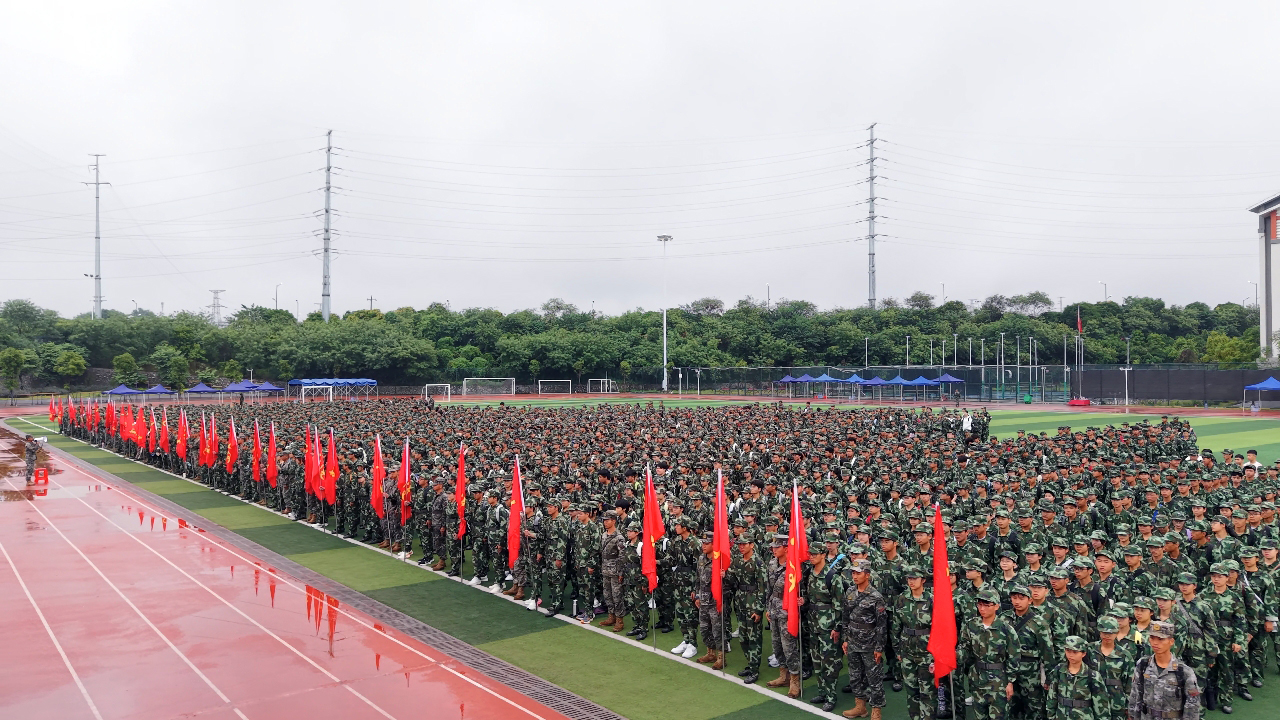随着总教官一声令下,学校两个校区同时吹响军训拉练号角。2025级新生们扬起鲜红的旗帜,整理行囊,开启雨后拉练之行。