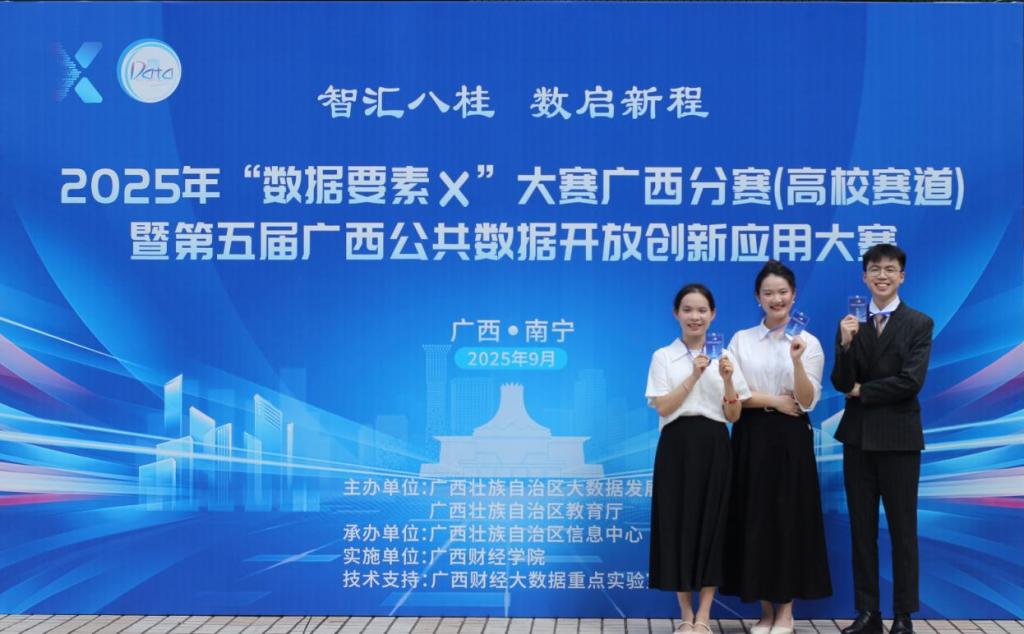 9月27日,2025年“数据要素×”大赛广西分赛(高校赛道)决赛在广西财经学院落下帷幕。学校获“优秀组织单位”,21级预防1班学生高金蕊(队长)、卢科霖、潘思霖、欧慧丽、吴阳秋组成的“CVL小分队”获高校赛道本科高职组一等奖,漆光紫教授获“优秀指导教师”。