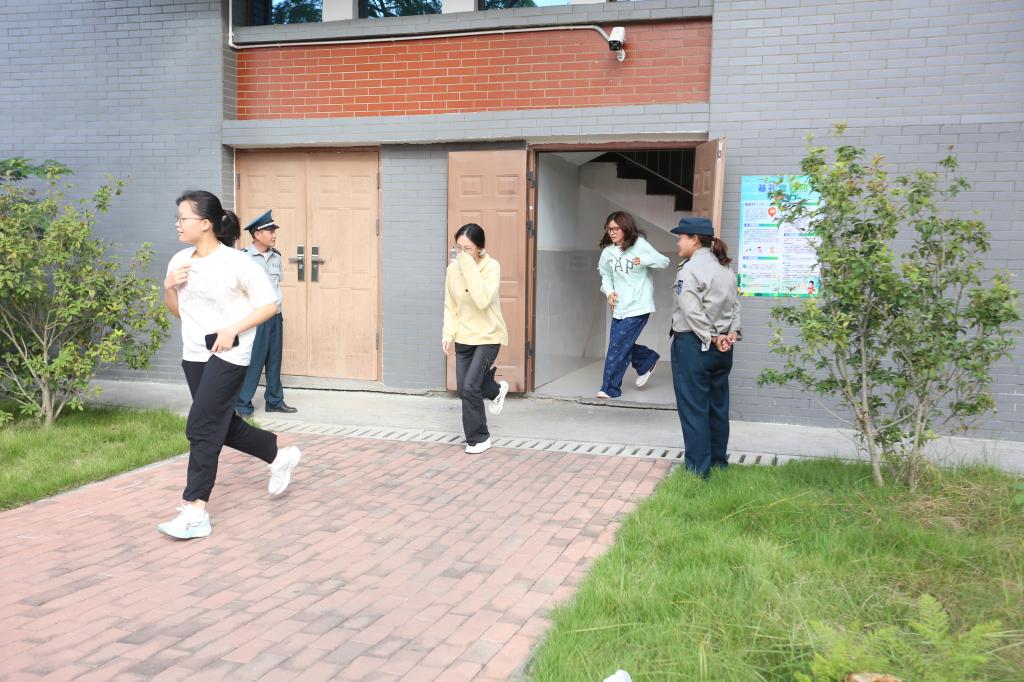 警报响起,教师和消防员迅速组织学生捂住口鼻,弯腰低姿,按照预定疏散路线,快速由4号学生公寓向操场安全区域撤离。短短两分钟内,公寓内所有学生便全部抵达指定集合点,清点人数无一人遗漏,整个撤离过程规范高效、秩序井然。