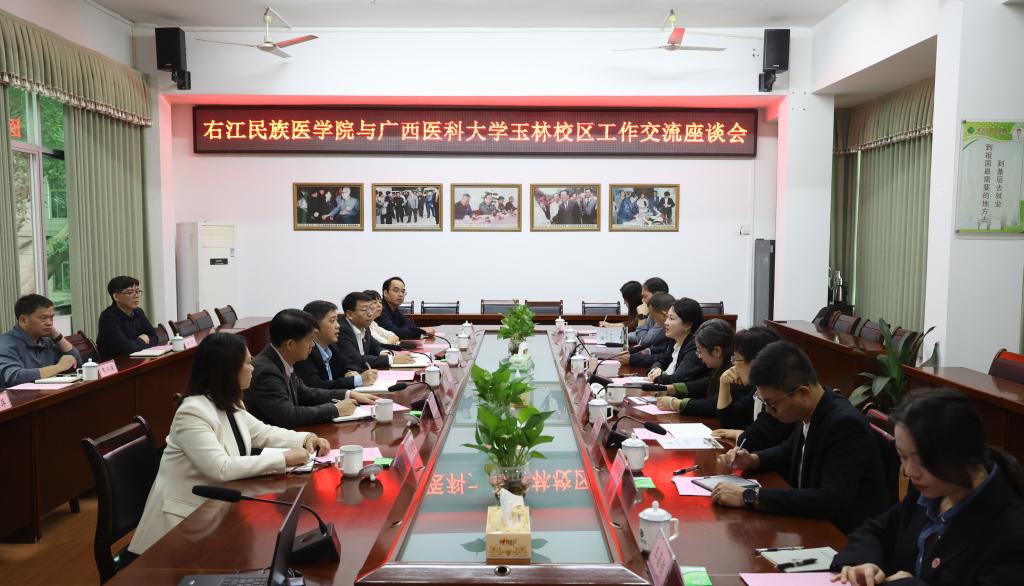 10月24日,广西医科大学玉林校区校长赵婷婷带队到鸭脖进行交流访问。校党委副书记、校长黄龙坚,党委常委、副校长王俊利及相关职能部门负责人热情接待了来访嘉宾。双方在百城校区图书馆会议室召开座谈会,会议由王俊利主持。