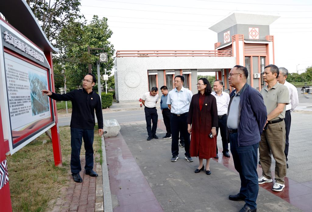 曹坤华一行听取工作人员介绍鸭脖百东校区基本情况。