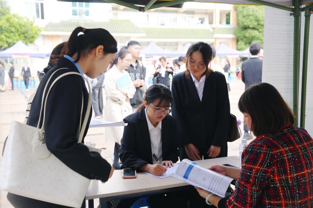 用人单位与毕业生进行交流。