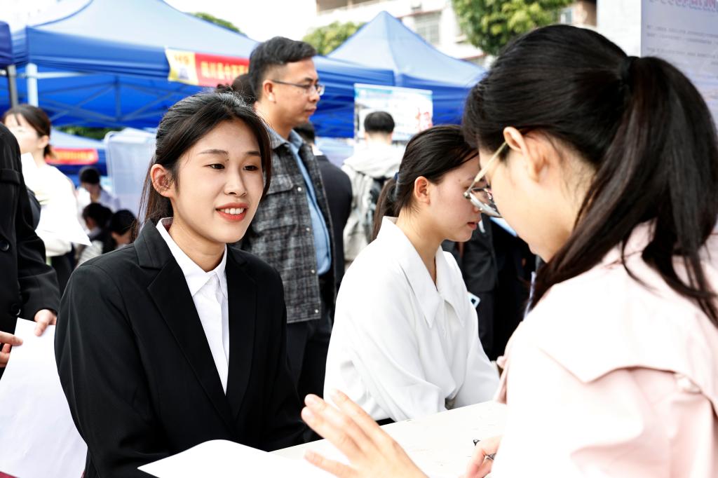 2026届毕业生自信地与面试官交谈。