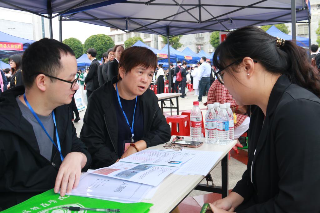 钟山县中医医院黄老师说道:“医院当前的临床医学岗位需求较大,在面试时我们会比较注重应聘者的形象气质、谈吐得体及沟通表达能力,强调医生需自信清晰地向患者传达诊疗信息,同时学业成绩也是我们的关键参考,这关系到入职后能否顺利考取职称并为医院做出贡献。医学之路任重道远,我们希望毕业生们不仅能吃苦、有自信,具备强大的抗压能力,更能树立远大的专业目标,保持不懈奋斗的毅力。”