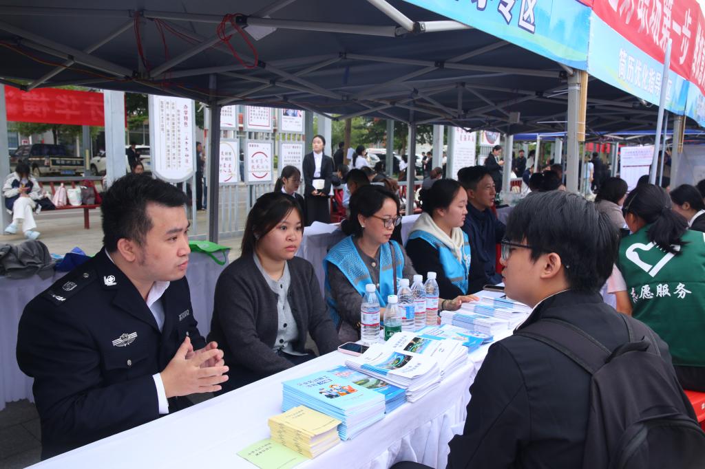 工作人员向毕业生宣传相关就业政策。
