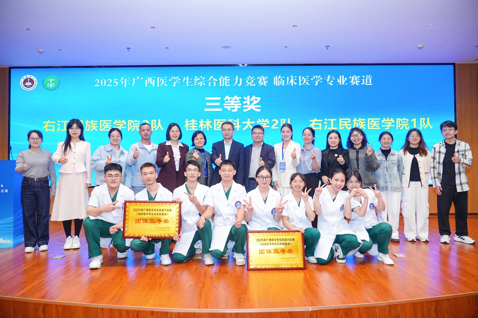 11月8日,2025年广西医学生综合能力竞赛(临床医学专业赛道)在南宁圆满收官。作为广西高校大学生学科专业竞赛项目A类权威赛事,本次竞赛由广西壮族自治区教育厅主办,广西本科高校临床医学类教学指导委员会、广西医科大学附属肿瘤医院联合承办,汇聚了全区多所医学院校的优秀学子同台竞技,全方位检验医学生的理论素养、临床实操与团队协作能力。