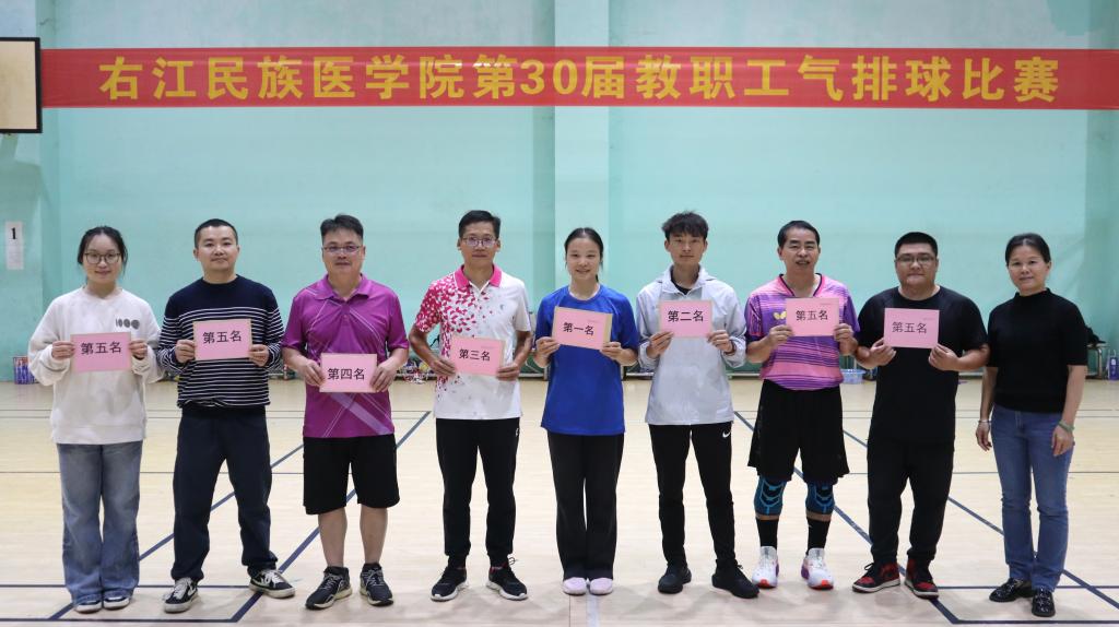 经过激烈的角逐,体育2队在比赛中获得第一名,体育1队获得第二名,武装保卫1队获得第三名,党群1队获得第四名,两办1队、信技1队、基础1队、护理学院队并列第五名,后勤服务保障1队、马院1队、党群2队、药学院、组织人事离退1队、勇敢牛牛(公卫学院)、生科院、信技2队并列第九名。