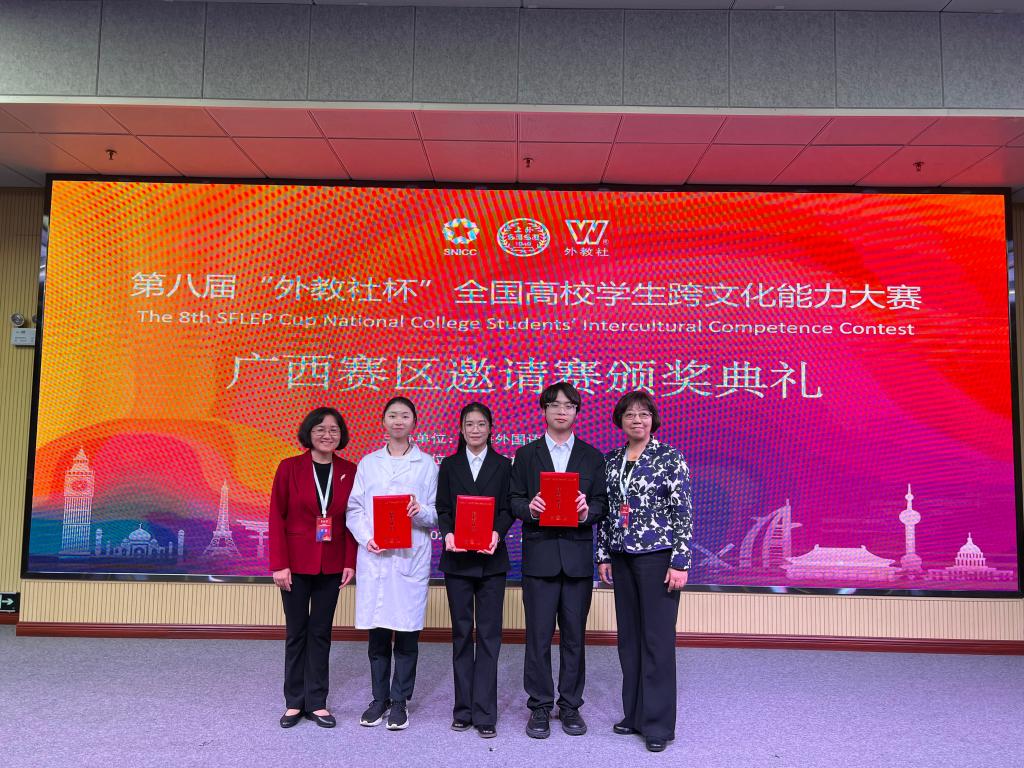 语言文化学院高度重视此次比赛,积极组织备赛工作。选派语言文化学院2025级翻译专硕学生陆捷、2023级临床医学专业朱雨晨、2023级口腔医学专业学生黄碧涛,突破专业壁垒,组成跨专业团队携手组队参赛。在江利娟、张霞、甘纯的联合指导下,历经初赛、复赛层层选拔,最终在决赛中脱颖而出。