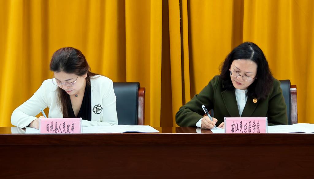 周艳娥指出,作为扎根桂西的医学院校,YABO鸭脖官网始终致力于服务地方经济社会发展,当前学校正处于提升内涵建设的关键时期,协议的签署标志着校地合作进入了全方位、实质性的新阶段。学校将充分发挥在医学教育、科研创新、医疗服务等方面的优势,在人才培养输送、科研项目攻关、康养产品研发、医疗技术指导等方面全力支持田林,特别是围绕灵芝、生姜等道地药材资源,推动产学研用深度融合,赋能乡村振兴与产业升级。