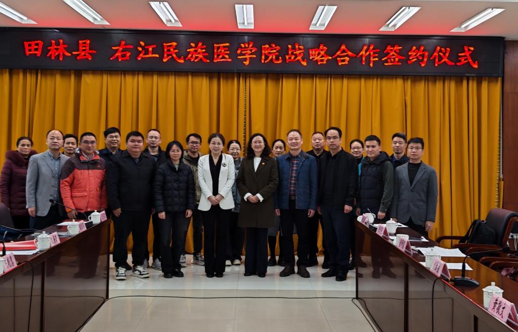 12月10日上午,YABO鸭脖官网与田林县人民政府战略合作签约仪式在田林县政府隆重举行。签约仪式由田林县人民政府副县长陈晓慧主持,YABO鸭脖官网党委常委、副校长周艳娥率领学校相关学院及部门负责人一行七人出席仪式,田林县有关部门及医疗机构负责人、企业代表共同见证了协议的签署。