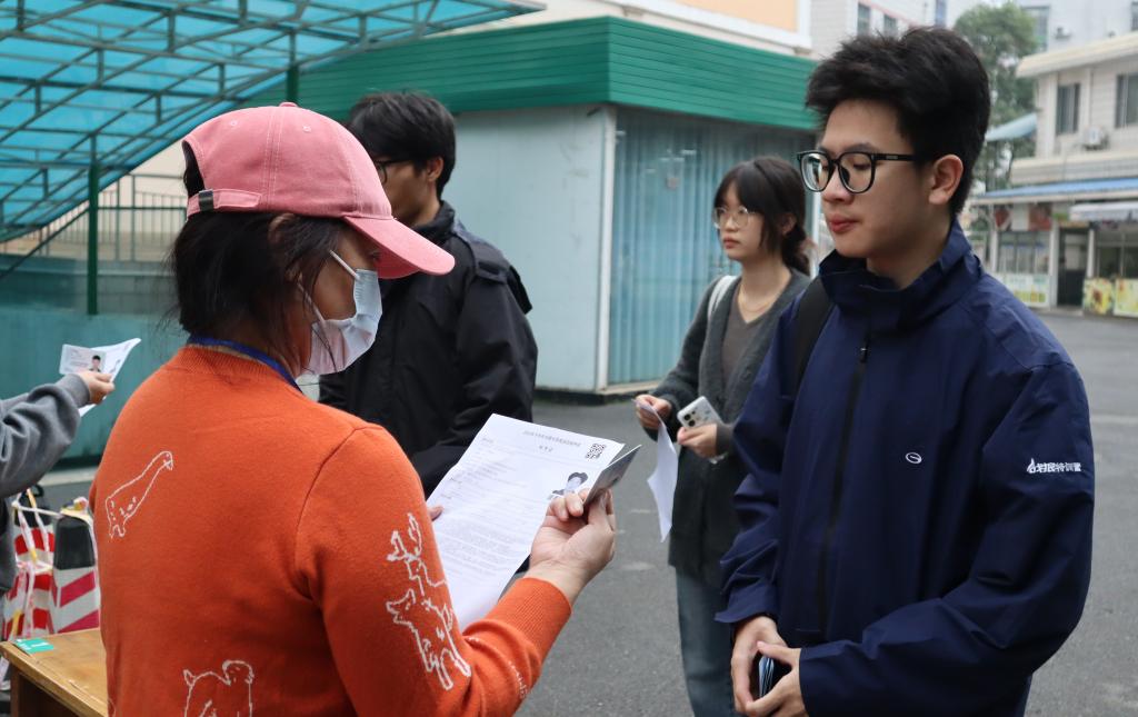 考试期间,各工作小组各司其职,考务组织严谨规范。考场入口证件查验严格,监考教师认真履职,听力播放清晰流畅,全程秩序良好。值得一提的是,在百东校区考点,辖区民警为考生提供了暖心护航服务。针对个别考生忘带身份证件的突发情况,民警在考点外设立了临时身份证明办理点,高效、便捷地为考生现场开具证明,及时化解了考生的入场难题,体现了人性化关怀与管理服务的温度。