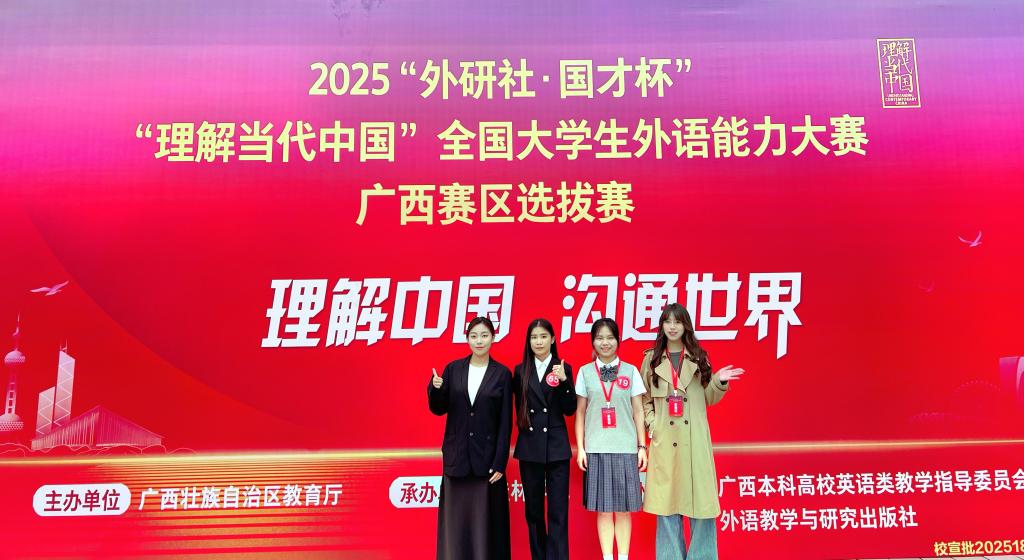 近期,广西壮族自治区教育厅正式公布2025 年“外研社·国才杯”“理解当代中国”全国大学生外语能力大赛广西赛区选拔赛获奖名单。鸭脖学子发挥出色,斩获金奖1项、银奖2项、铜奖4项。