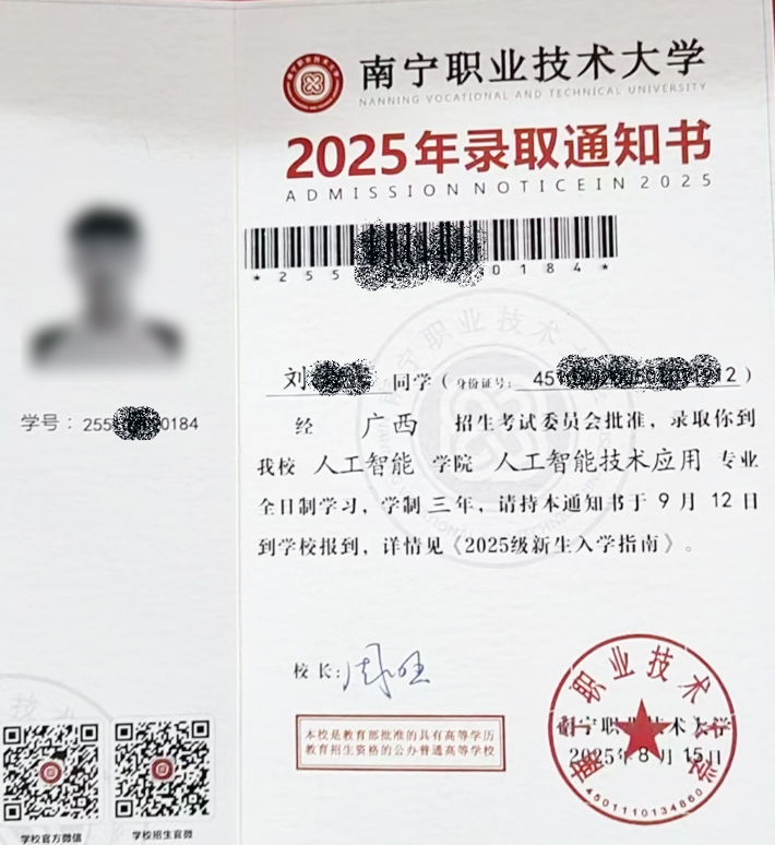 刘同学的录取通知书