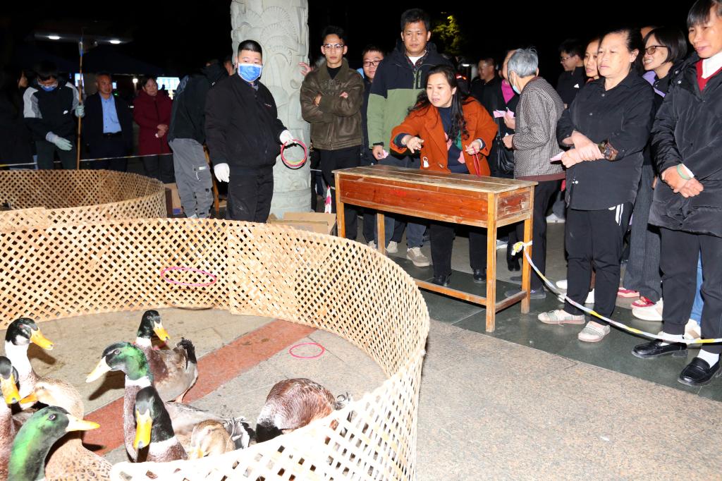 12月26日晚,鸭脖工会组织开展2026年元旦游园活动。图为教职工在“套活鸭”。