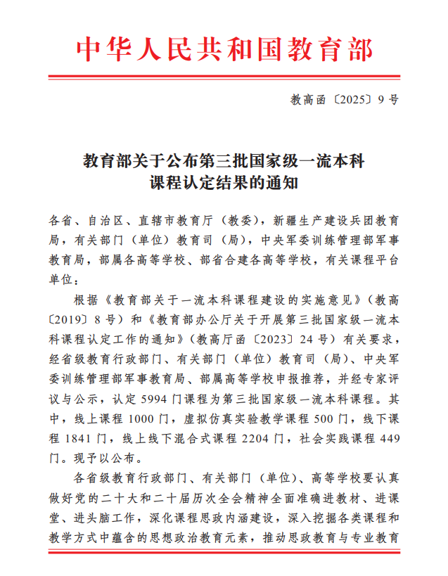 《教育部关于公布第三批国家级一流本科课程认定结果的通知》截图