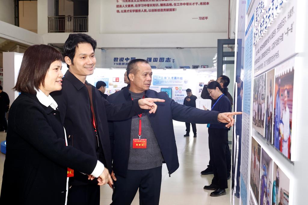 1月13日下午,广西第十四届全国人大代表到鸭脖调研,图为参观办学成果展厅。
