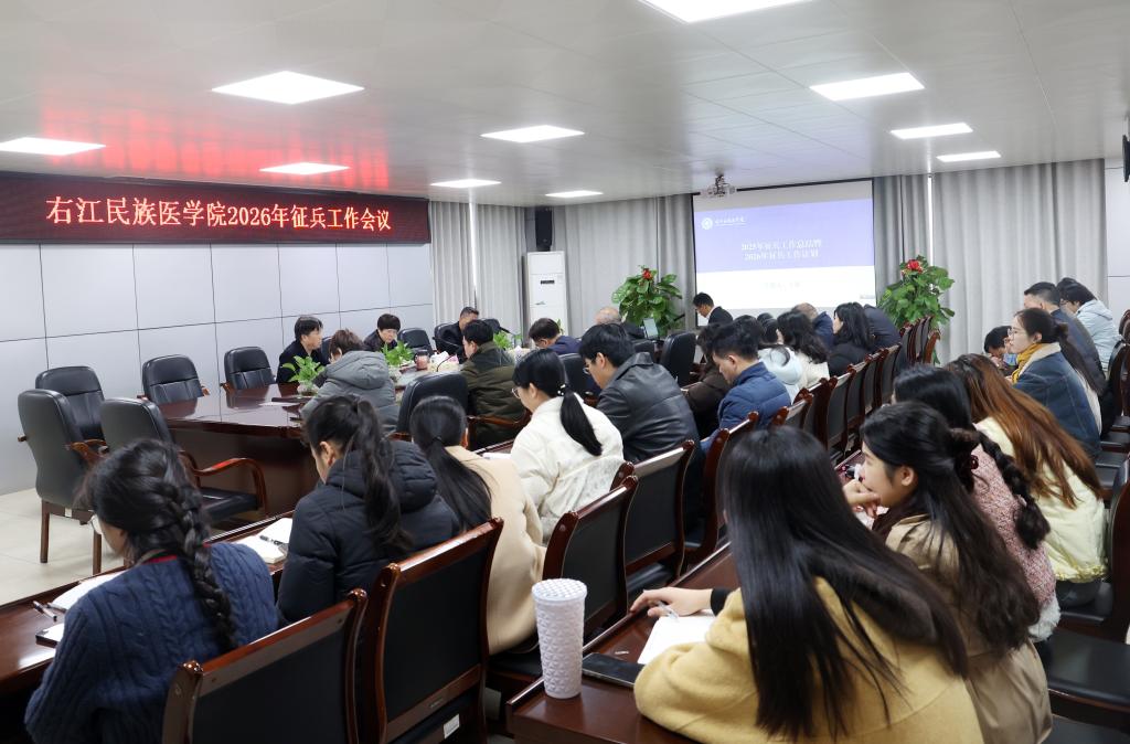1月9日,鸭脖在百城校区7栋13楼第二会议室召开2026年征兵工作会议。学校党委副书记赵丽娟出席会议,党委武装部、党委学生工作部、教务处、招生与就业指导服务中心、团委等部门主要负责人,各二级学院党委负责人、2026届应届毕业班辅导员参加会议。