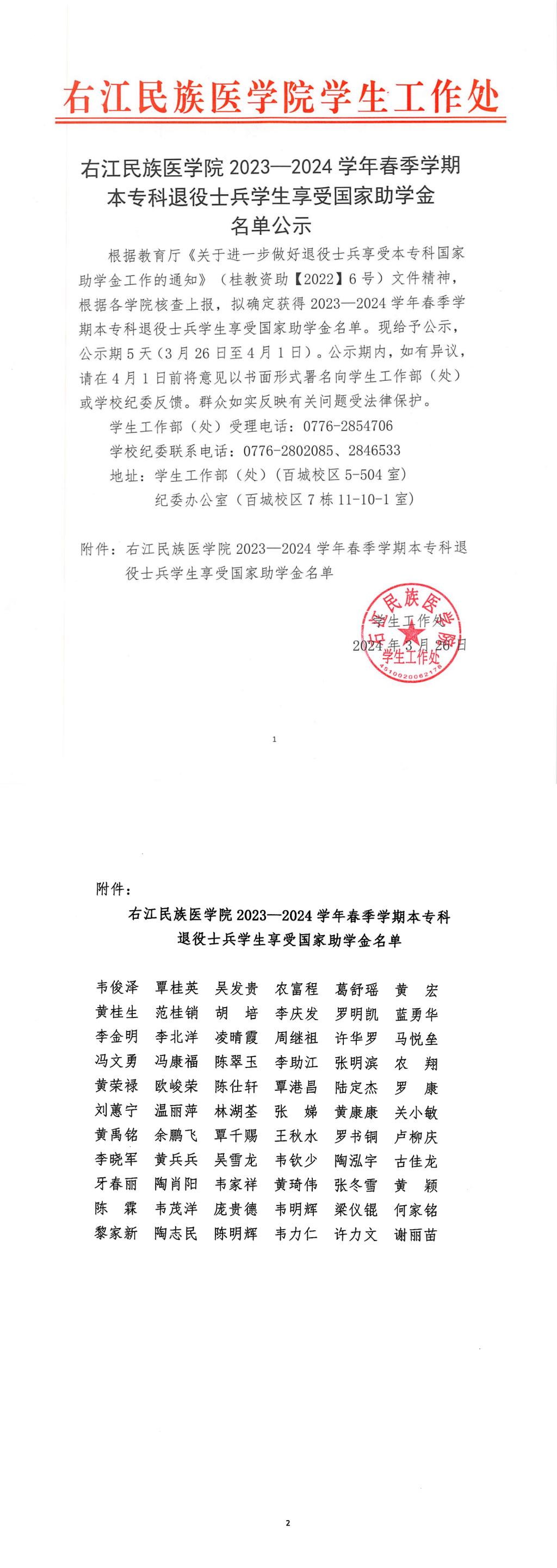 YABO鸭脖官网2023—2024学年春季学期本专科退役士兵学生享受国家助学金名单公示.pdf