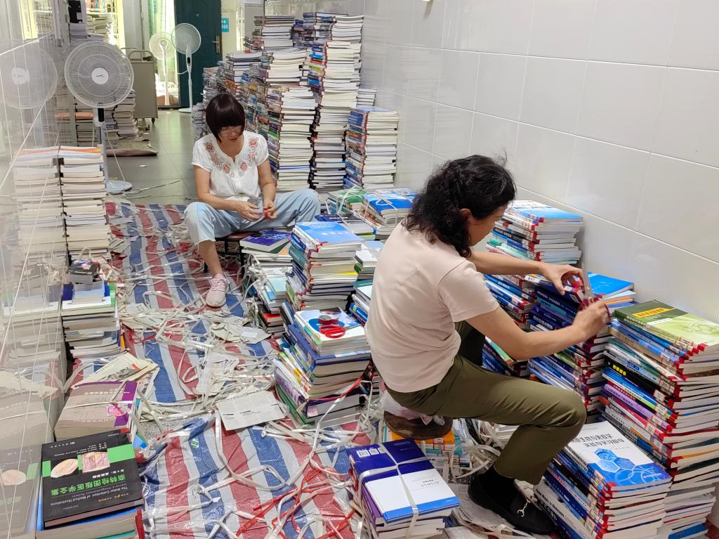 7月13日开始,图书馆为确保按时完成百东校区临时图书室图书的搬迁任务,全力抢抓搬迁进度,及时跟进搬迁进展,图书馆全体工作人员利用休息及周末时间,加班加点完成搬迁图书的馆藏标记、分类、排序及打包等工作。在图书下架打包的过程中,特别是在书库的狭小空间以及百色高温预警等环境中,全体职工挥汗如雨,但是大家都不叫苦不喊累不嫌脏,齐心协力投入到热火朝天的搬迁工作中。