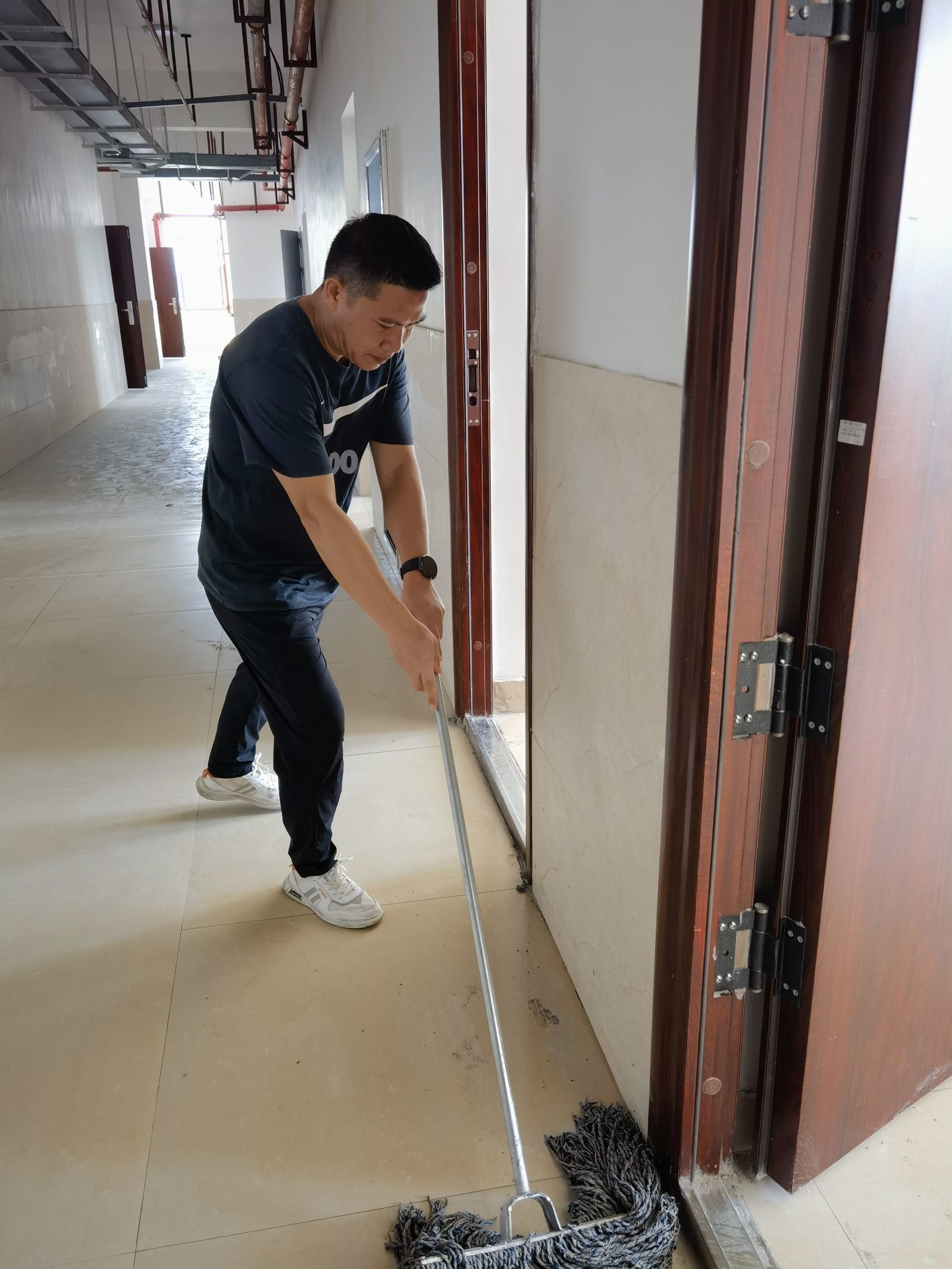 清扫前,学生工作部部长梁旭明向全体志愿者介绍了百东校区入住前清扫工作和鸭脖文明校园建设工作的重要性,并细化分工,提出工作要求,倡导每位师生都自觉加入到鸭脖文明校园建设工作当中。活动中,党员们积极参与、情绪高涨,大家手持扫帚、拖把、抹布等工具,有的清扫地面、有的擦拭橱窗,大家相互帮助、团结协作,认真、细致的打扫每个角落,确保卫生不留死角。