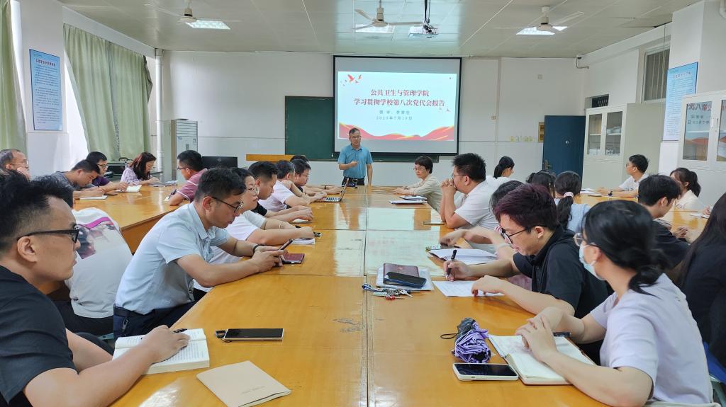7月19日上午,公共卫生与管理学院在6栋803组织教职工学习贯彻学校第八次党代会报告,由该院党委书记李常应领学,党委副书记张文玲主持。