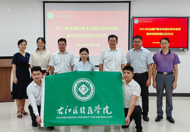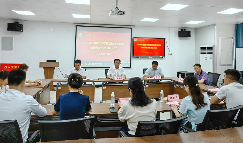 8月17日上午,护理学院在二楼大教室举行2023年全国护理本科院校青年教师临床技能竞赛出征仪式。学校党委副书记、校长李雪斌教授出席,教育评价与教师发展中心韦荣耀副主任、护理学院党委黄上峰副书记、教育评价与教师发展中心舒方义科长、参赛指导老师以及参赛选手参加,仪式由护理学院党委黄上峰副书记主持。