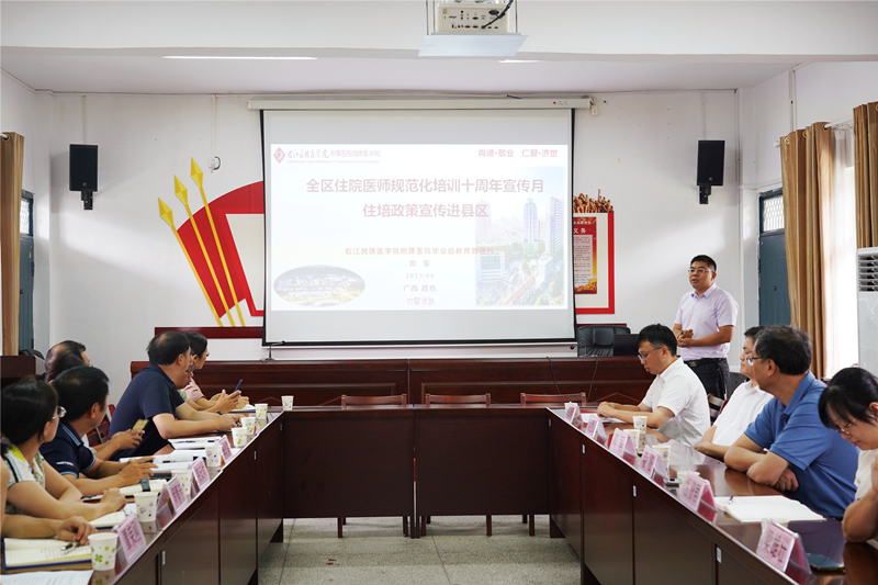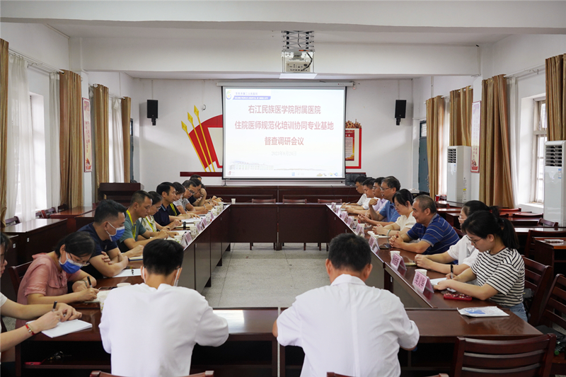 为进一步规范培训流程,强化住院医师规范化培训神经内科专业基地同质化管理,8月24日上午,右医附院潘征副院长率医院神经内科专业基地负责人、教务管理部门负责人等一行7人,前往百色市第二人民医院开展住院医师规范化培训协同专业基地督查调研。百色市第二人民医院党委副书记韦尚安、副院长罗慧芳以及该院相关部门负责人参加会议。