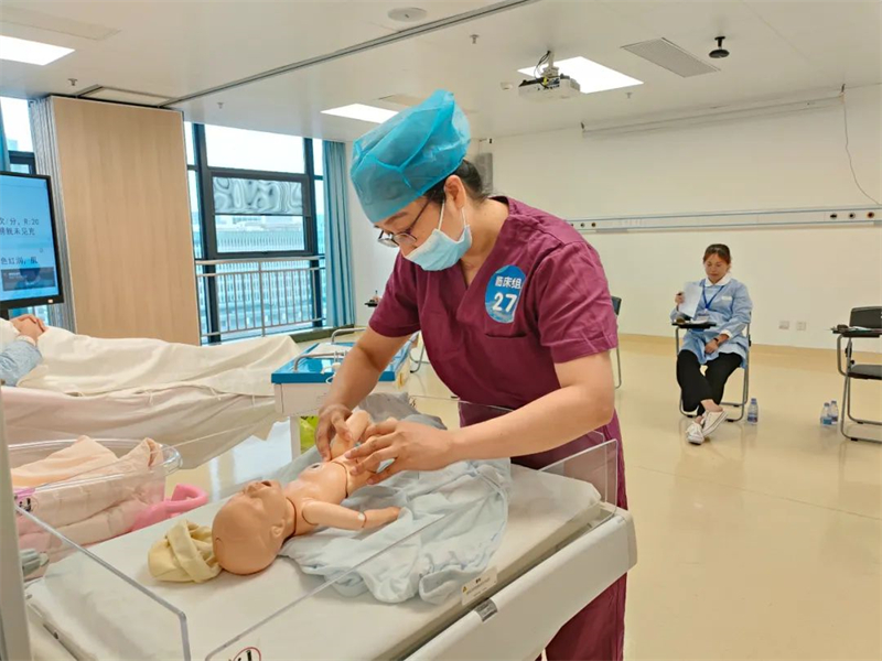 此次大赛分为理论知识考核和技能实操考核两部分,对助产士专业知识、操作质量、临床思维、应急能力、人文关怀等方面进行了的综合考评。比赛中,来自学校和附属医院的朱小英、卢秋芸,以专业的理论知识、规范的操作流程和娴熟的操作技术,将过硬的助产技能展示在比赛现场,充分展现了新时代助产士的风采。