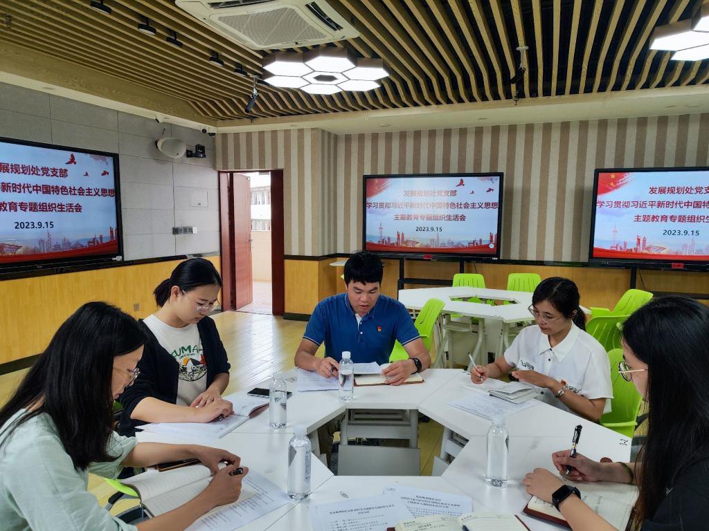 9月15日下午,发展规划处党支部召开学习贯彻习近平新时代中国特色社会主义思想主题教育专题组织生活会,支部全体党员参加会议,机关党委副书记、纪委书记王文霞同志到会指导。会议由支部书记庞广福同志主持。