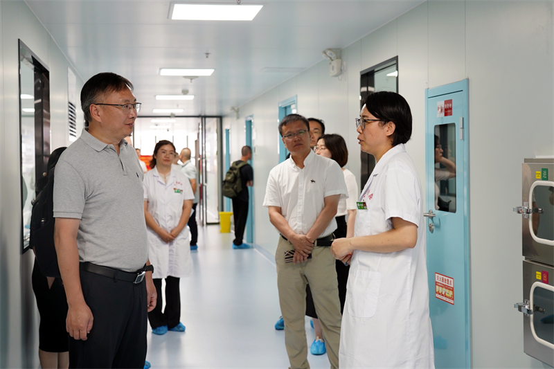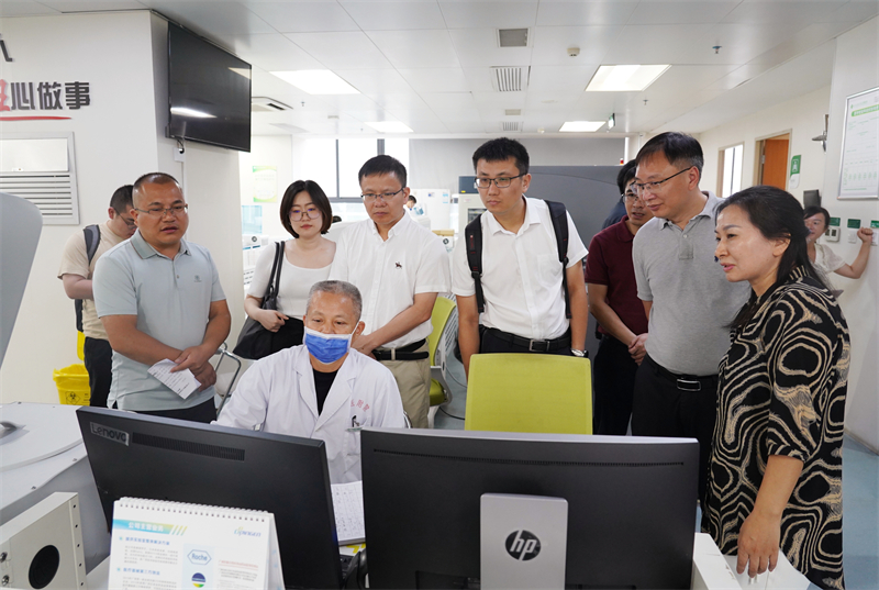 交流期间,陈国兵教授一行还先后到右医附院院史馆、生命科学与临床医学研究中心、病理实验室、检验科等地实地参观,深入了解医院文化建设、临床教育教学、一流学科专业建设、人才队伍建设等工作的开展情况,充分肯定了医院现阶段在各项工作建设中所取得的成效,对医院实验室建设、人才引进、学科规划工作等提出了系列有指导性的建议和意见。