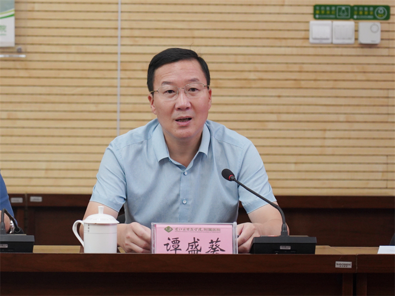 谭盛葵在致辞中首先对陈国兵教授及专家团队的莅临指导表示热烈欢迎和衷心感谢,并详细介绍了学校和附属医院的发展历程、办学理念、人才培养、学生招收、科学研究以及近年来取得的成果等情况。谭盛葵表示,此次调研交流活动是双方今后开展交流合作的良好开端,旨在加强两院之间的学术交流,共同探讨如何通过科技创新与科研育人的深度融合,以满足边疆地区医学教育高质量发展需求。希望双方今后能够加强交流合作的广度和深度,不断深化医疗、教学、科研、社会服务等多领域合作,也希望暨南大学在临床诊疗、医学研究、学科建设、人才培养、科技创新等方面给予更大的支持和帮助,共同推动YABO鸭脖官网和附属医院在医学研究和教学工作中的进步和发展,为边疆医疗和教育发展注入活力。