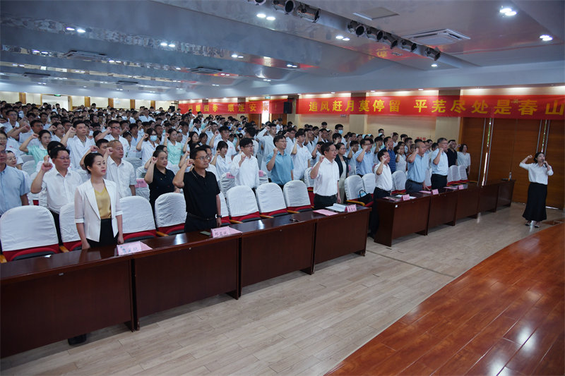 开班仪式上还为新职工代表举行了授工服、授燕尾帽仪式,并举行新职工宣誓仪式,全体人员用铿锵有力的声音表达了不忘医者初心、牢记守护人民群众身心健康的使命担当。