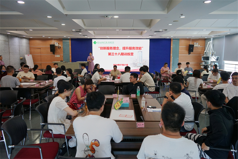 2024年7月21日下午,右医附院在总院区组织2024年新入职员工开展第38期“创新服务理念 提升服务效能”训练营活动,增强新员工的综合素质和服务质量,塑造医院良好的服务形象。右医附院2024年新入职医师、医技员工代表近百人参加培训。