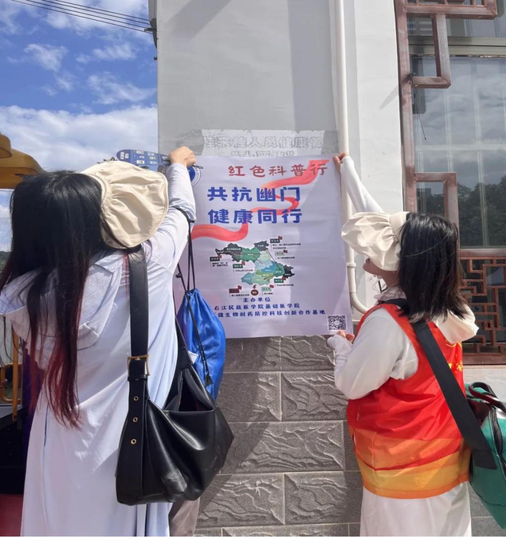 科普队员张贴宣传海报