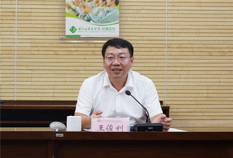 附院副院长邓益斌在发言中介绍了医院文化历史发、医疗技术、学科建设、人才培养、科研攻坚等工作开展情况,希望上海交通大学转化医学研究院专家团队在医疗技术、医疗设备等方面继续给予鸭脖附院提供更大的支持和帮扶,助力桂西地区医疗技术和医疗水平的提升与发展。