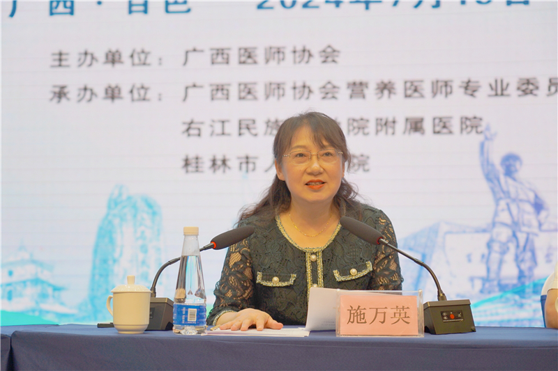 中国医师协会营养医师专业委员会施万英副主任委员代表中国医师协会营养医师专委会对本次会议的召开表示热烈的祝贺,殷切期望从事营养相关医务工作者们继续加强学术交流与合作,不断提高临床营养服务的标准化、规范化水平及医务人员业务能力和专业素养,积极推进临床营养学科的创新与发展,为建设健康中国贡献更大的力量。