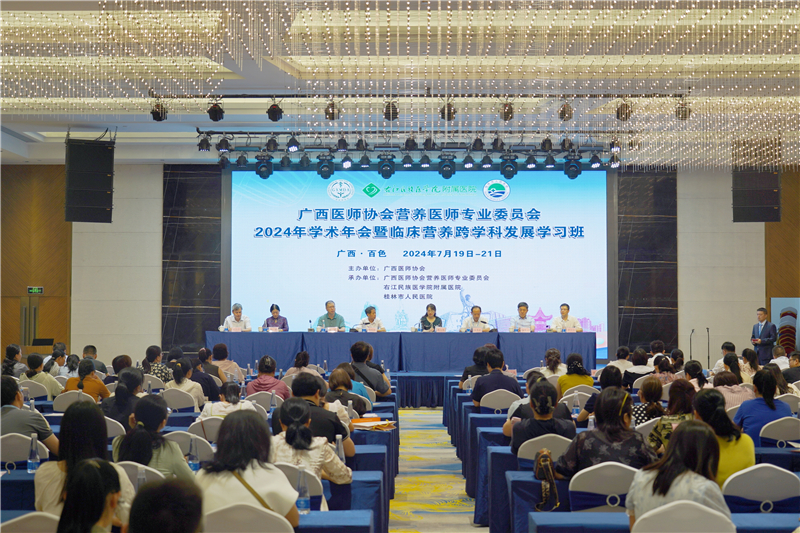 2024年7月19日至21日,由广西医师协会主办,广西医师协会营养医师专业委员会、鸭脖附属医院、桂林市人民医院承办的广西医师协会营养医师专业委员会2024年营养学术年会暨临床营养跨学科发展学习班在百色城顺利举办。中国医师协会营养医师专业委员会副主任委员、中国医科大学附属第一医院临床营养科主任施万英教授,广西医师协会赵劲民会长,广西医师协会营养医师专业委员会主任委员张勇胜,鸭脖附属医院副院长潘征,广西医科大学第一附属医院副书记赖铭裕致开幕词。广西医师协会营养医师专业委员会全体委员以及广西区内各级医疗机构100余名从事营养相关医务工作者参加会议。广西医科大学第一附属医院营养科项杰博士主持本次会议开幕式。