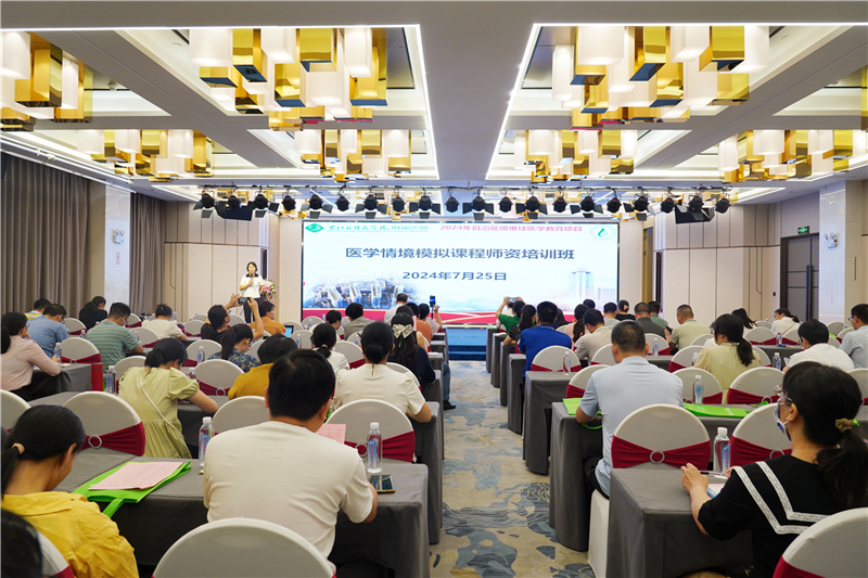 2024年7月25日-27日,临床医学院(附属医院)在百色城举办2024年自治区级继续医学教育项目《医学情境模拟课程师资培训班》,先后邀请了区内外10位知名专家教授到会授课,来自全区各住院医师规范化培养基地和各助理全科医生培训基地分管领导、院级教学管理部门负责人、临床技能中心主任和骨干教师、各专业基地教学管理人员和临床科室带教师资近200人参加培训。临床技能中心主任施桂玲主持开班仪式。
