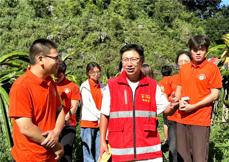 7月16日清晨,实践团成员在驻村第一书记黄何华带领下,走进岩腊村火龙果基地开展实地调研,通过“学习+参观+交流”的方式探索火龙果生长的“奥秘”。活动中,实践团成员围绕火龙果种植向黄书记提出疑问并学习了播种技巧,丰富了农业知识,体验了农耕文化。