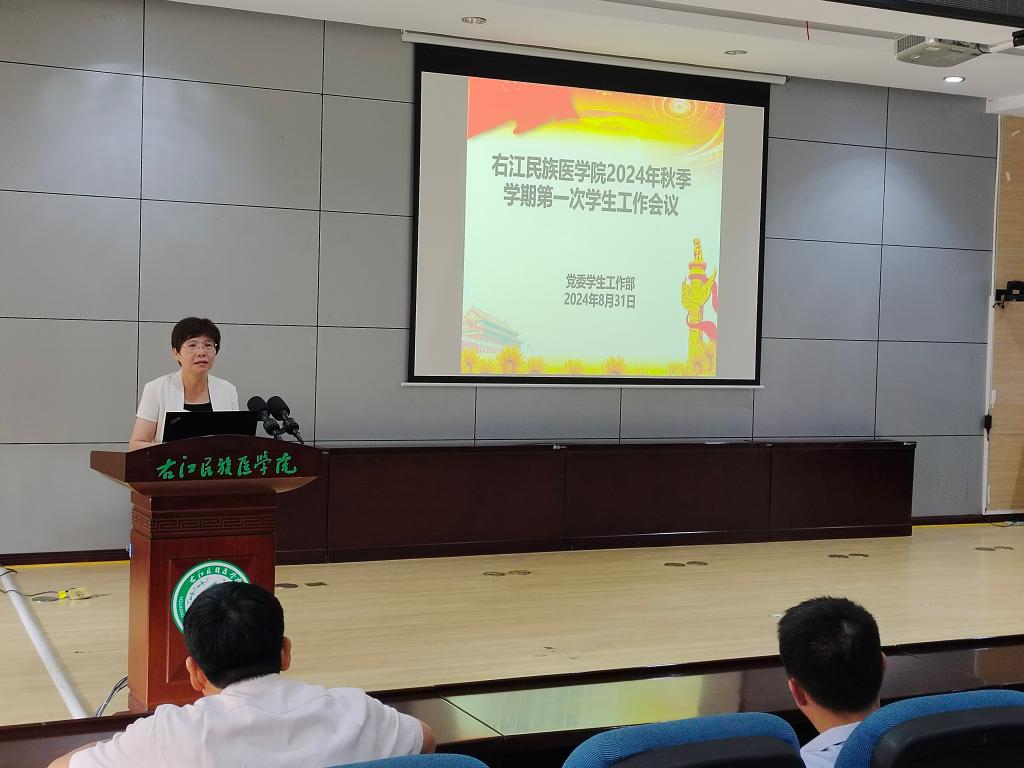 8月31日上午,鸭脖在5栋101学术报告厅召开2024年秋季学期第一次学生工作例会。学校党委副书记赵丽娟出席会议并讲话,学生工作处全体成员、各二级学院分管学生工作领导、全体辅导员参加会议。会议由学生工作处处长梁旭明主持。