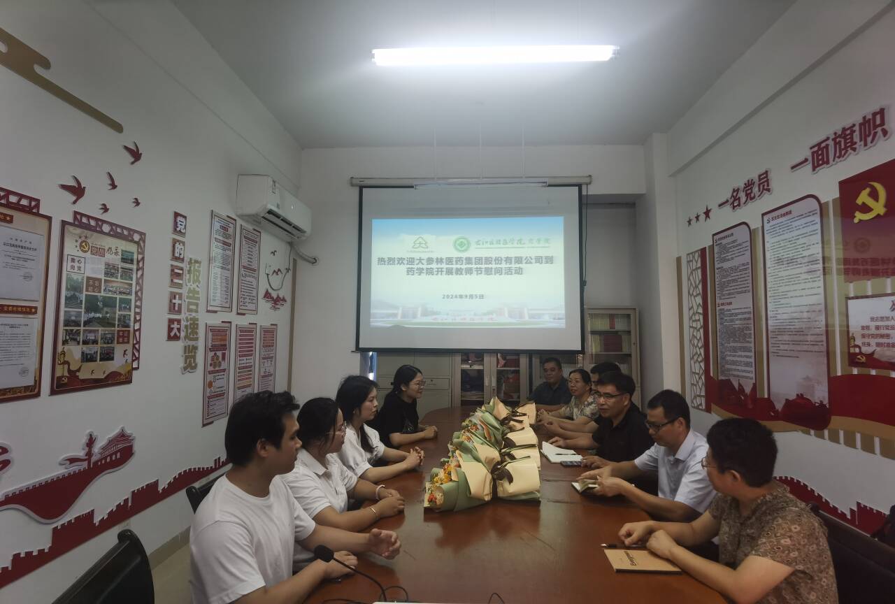 为大力弘扬教育家精神,全面提升教师队伍整体水平,营造浓郁的尊师重教氛围。近日,大参林医药集团股份有限公司与药学院一同慰问全国高校青年教师教学竞赛三等奖获得者梁威老师,及校级优秀教师代表杨凤莲老师、滕立平老师,并开展座谈交流。
