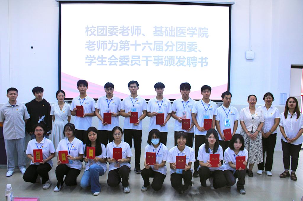与会领导、老师为基础医学院第十六届委员、干事颁发聘书