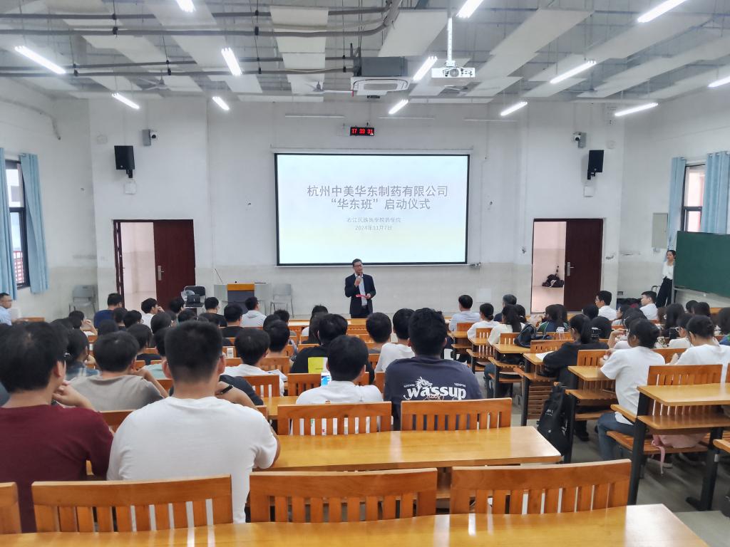 韦贤院长在启动会上对2023级药学、中药学本科生就报名“华东班”做动员讲话。他从医药行业的改革与发展、药学(中药学)毕业生就业形势等方面介绍了“华东班”设立的目的和意义,以及加入“华东班”的优势。他表示,希望学生通过参加“华东班”完成相应的校企课程,早期接触企业的文化和岗位工作技能历练,使自己在毕业时能够快速适应岗位工作,为今后的就业、创业打下坚实的基础。