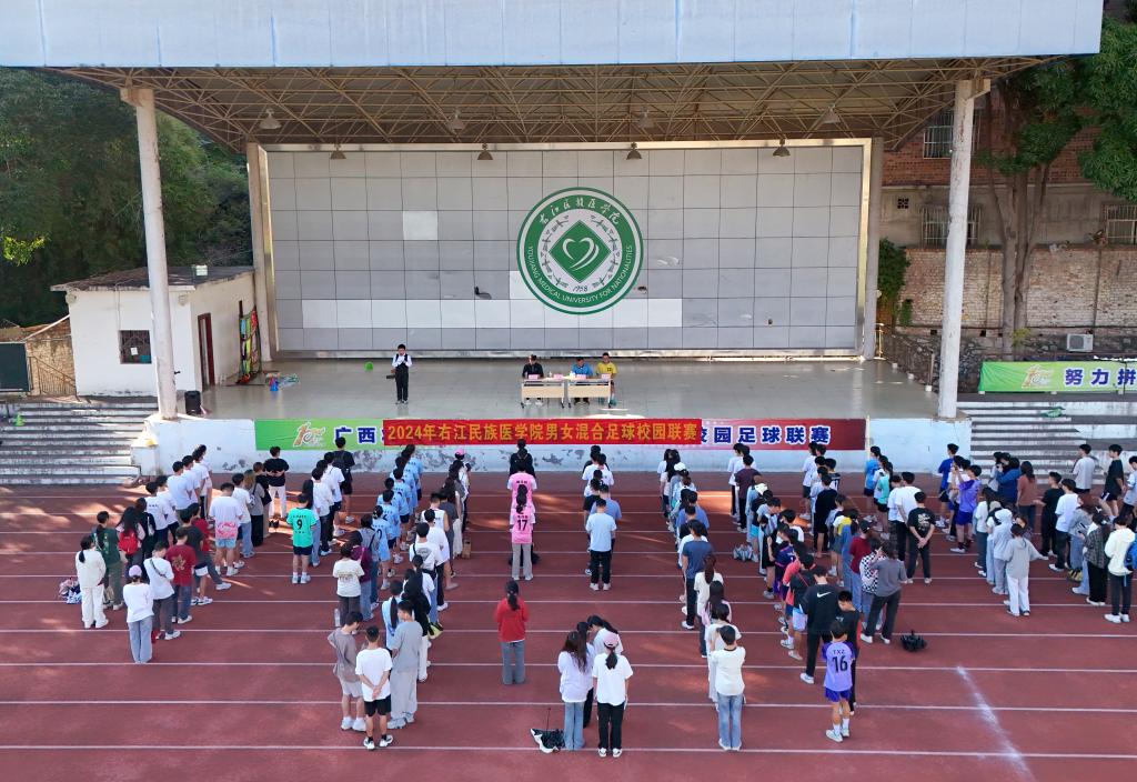 11月10日,鸭脖在百城校区足球场举行2024校园男女混合足球校园联赛开幕式
