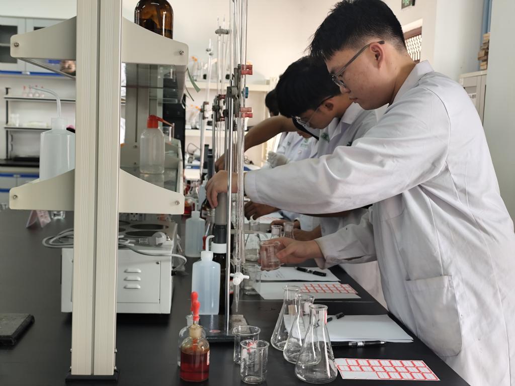 药学院学/中药学实验技能操作大赛决赛在百东校区精诚楼举行。药学院院长韦贤老师、教学科黄丽蓓老师以及各学生组织代表出席本次活动。低阶赛道的比赛在精诚楼A401分析/药分实验室进行,由经验丰富的薛强老师、郑晋生老师担任评委。高阶赛道在精诚楼A501有机/医用化学实验室举行,由黄祖良老师、黄杰连老师担任评委。比赛中选手们专注操作,严谨对待每一个步骤,有条不紊地组装实验装置,各个部件在他们手中迅速精准就位,连接得严丝合缝。在进行沸点测定时,他们更是全神贯注,眼睛紧紧盯着仪器,耐心等待每一丝细微变化,时刻准备捕捉关键数据并记录下来,整个操作过程有条不紊,将他们对专业技能的熟练掌握展现得淋漓尽致。