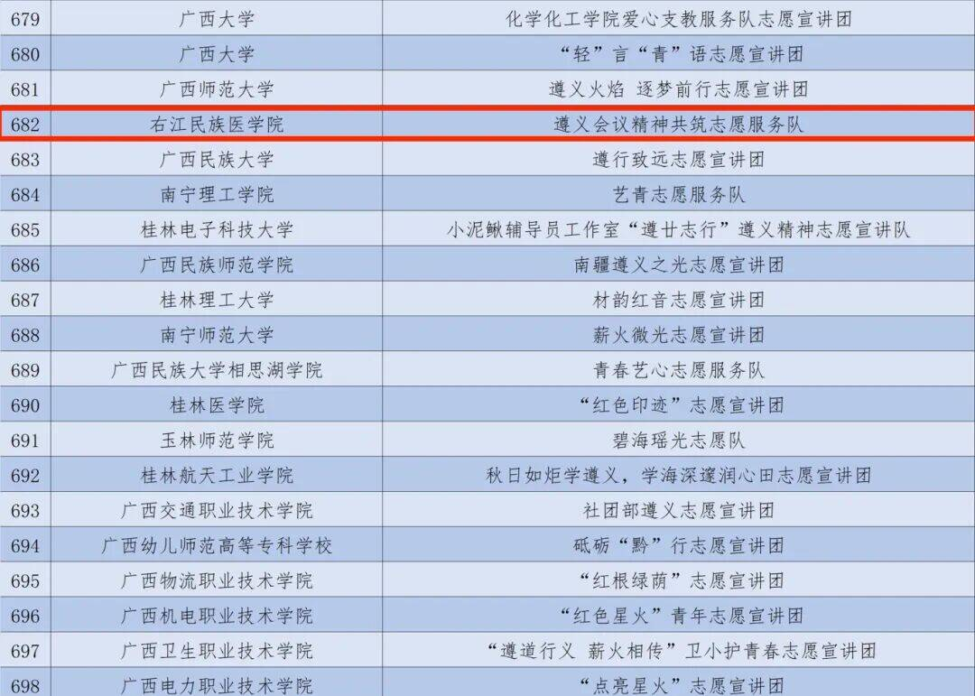 2024年全国大学生遵义会议精神志愿宣讲团广西入选团队名单