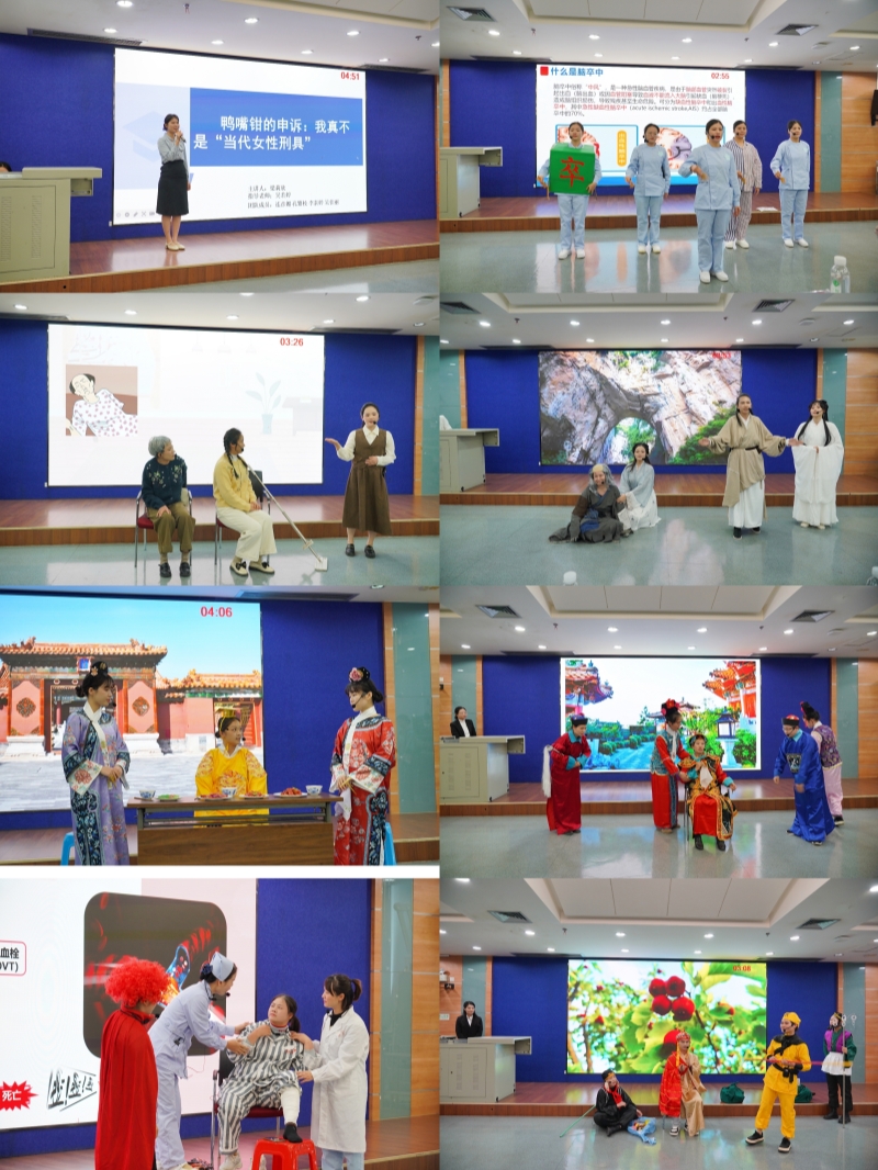 比赛现场,各参赛队伍根据比赛要求,通过PPT讲解、展示护理新用具以及通过各种表现形式进行健康科普和人文护理展演等,以具有感染力、可视化、通俗易懂的语言和便于传播推广的表现方式对专业的护理知识进行科普,充分展示了护理人员的科学性、实用性和创新性。