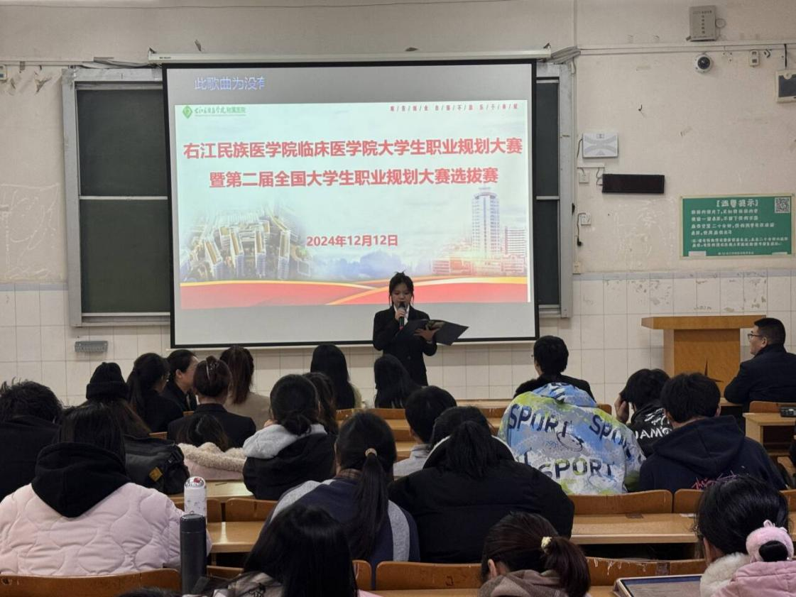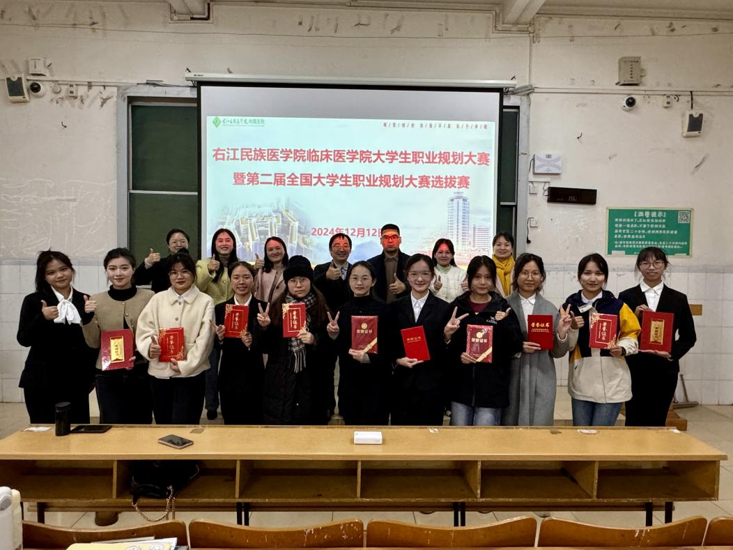 为激发学生对职业生涯的深入思考,帮助学生明确职业目标,提高职业素养与能力,制定切实可行的职业规划。12月12日下午,临床医学院在学校5-604教室举办以“筑梦青春志在四方,规划启航职引未来”为主题的大学生职业规划大赛院内选拔赛,临床医学院团委副书记杨再见、辅导员代表杜小墨、马娟、刁宇、龙小林担任此次大赛的评委。