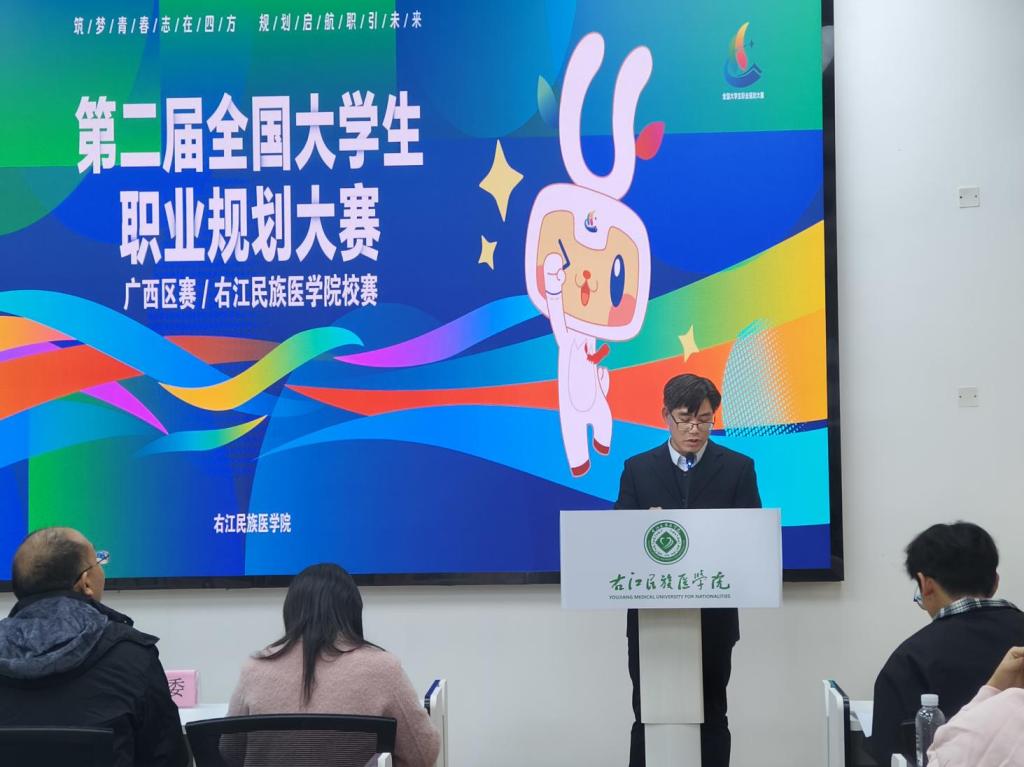 为了加强大学生职业生涯教育与就业指导,增强大学生职业规划意识,指导大学生及早做好就业准备,以择业新观念打开就业新天地,促进大学生高质量充分就业。教育部于今年举办第二届全国大学生职业规划大赛。12月18日下午,鸭脖招生与就业指导服务中心与校团委联合举办以“筑梦青春志在四方,规划启航职引未来”为主题的YABO鸭脖官网2024年大学生职业规划大赛暨第二届全国大学生职业规划大赛校级选拔赛,活动分别在百城校区国际会议中心二楼学术报告厅和百东校区就业创业中心路演学术厅进行。大赛由招生与就业指导服务中心主任陆小曲、副主任韦星、副主任黄锋,校团委副书记(主持全面工作)何彦妮、副书记韦金凌,人事处人才科科长谭琳,学工处学生资助管理办公室主任韦燕萍,招生与就业指导服务中心就业科科长李婕、办公室主任李端阳,马克思主义学院赵玉鹏教授出席并担任评委,各二级学院教师和学生代表共同参与。