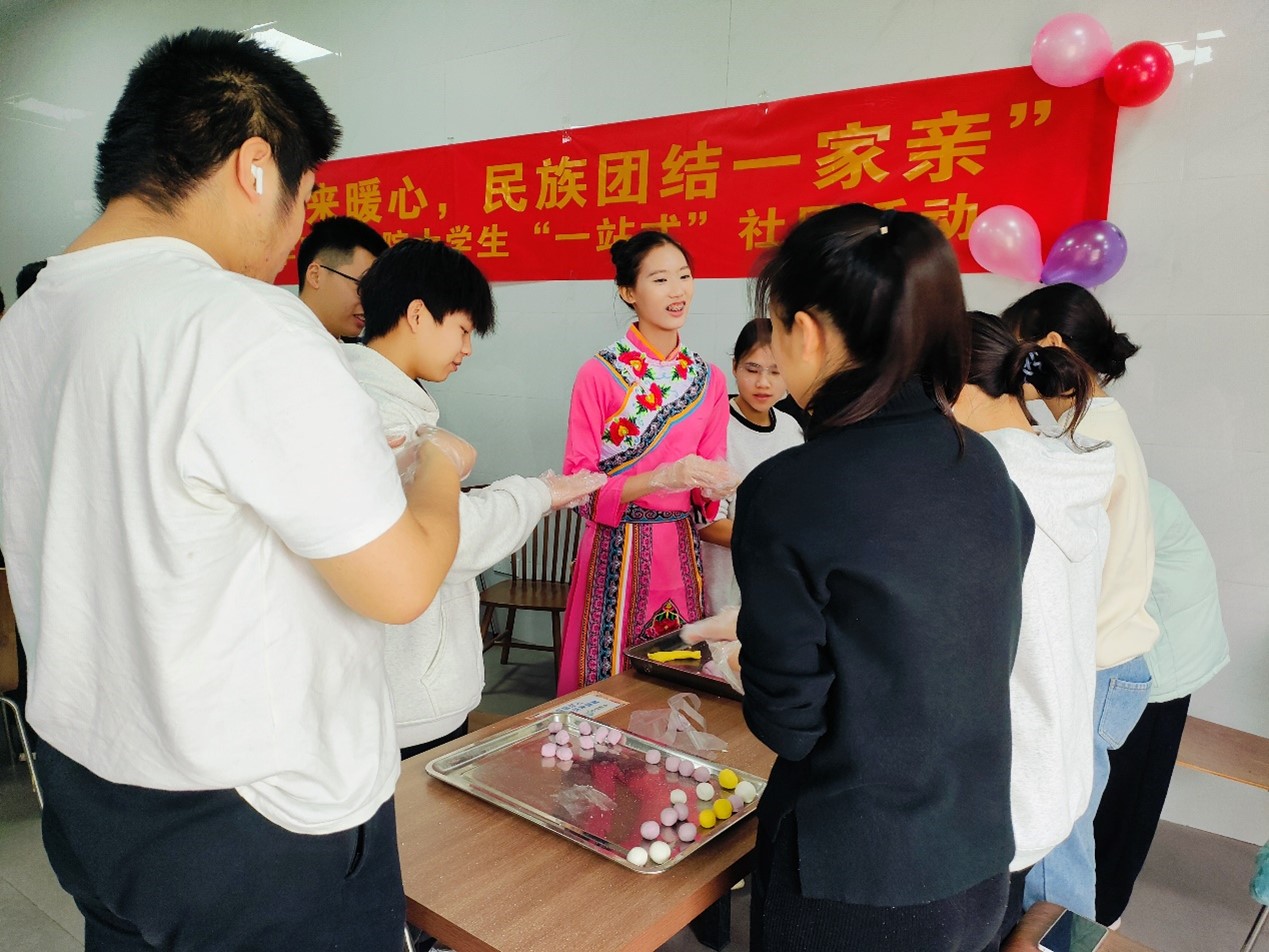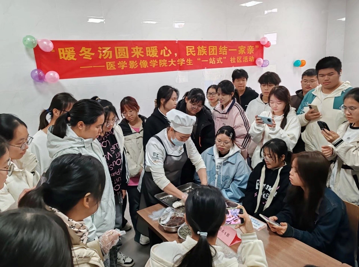 12月21日是中国传统二十四节气中的冬至节气,为让同学们感受家的温暖与节日的氛围,弘扬中华优秀传统文化,促进各民族学生之间的交流互动,增强民族认同感和凝聚力,医学影像学院在百东校区大学生“一站式”社区开展“暖冬汤圆来暖心,民族团结一家亲”包汤圆活动。学院党委副书记黄春苗、学生科科长卢小新及各年级辅导员一同参加活动。